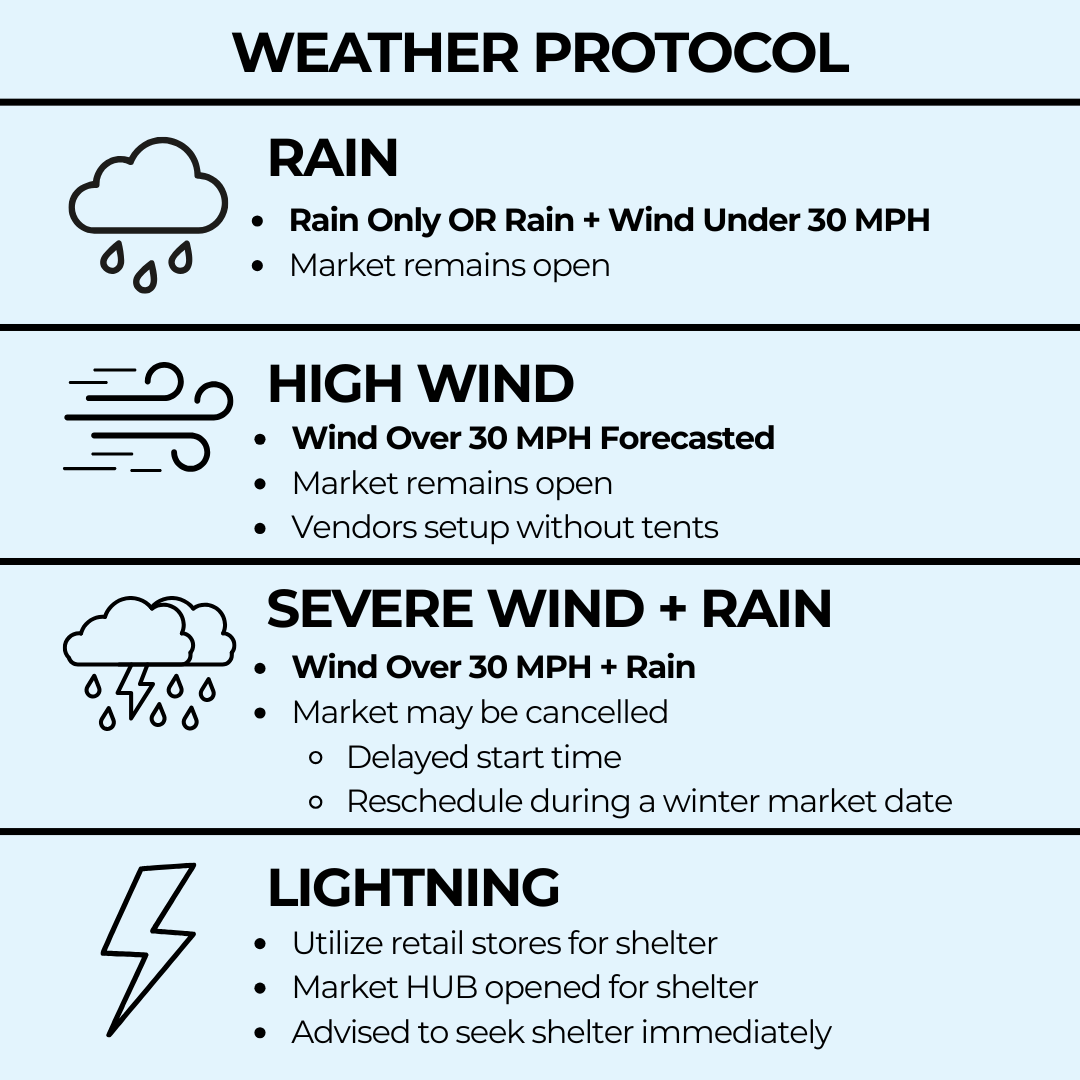 The 2026 season will begin Sat, April 4th and continue for 31 weeks. Market hours are 8am-12pm, rain or shine.